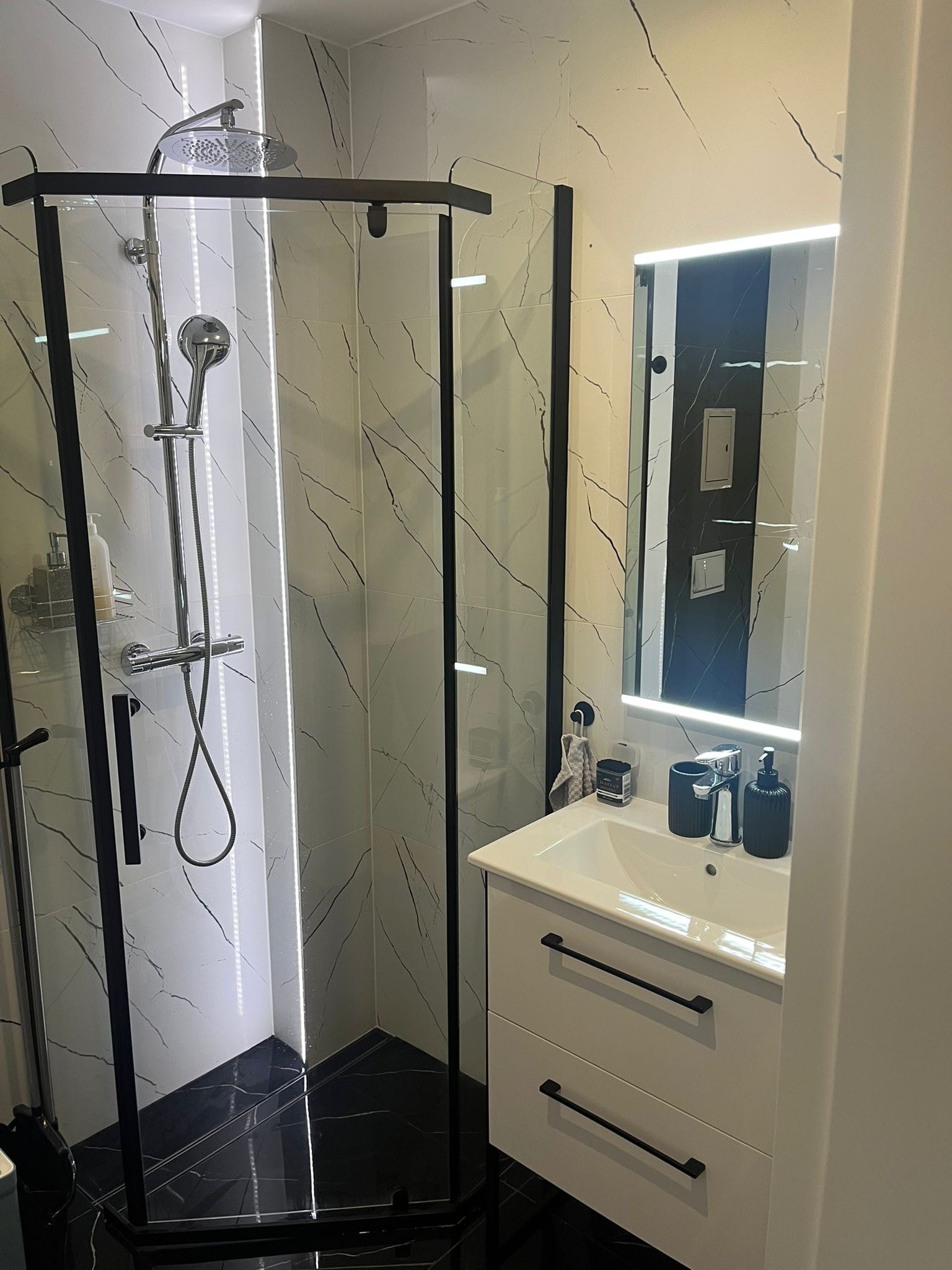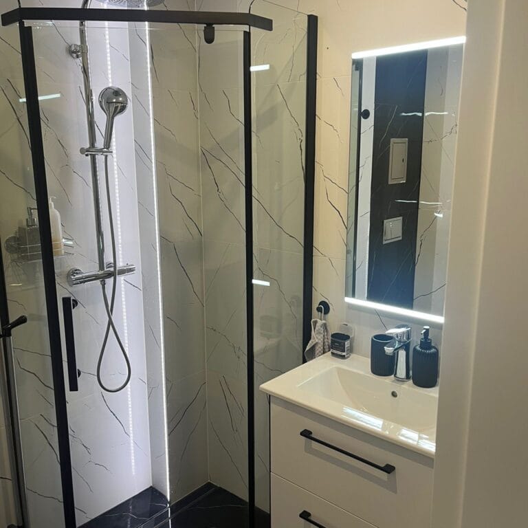 Toaleta, kabina prysznicowa, suszarka do włosów, ręczniki, papier toaletowy – gotowy zestaw startowy!