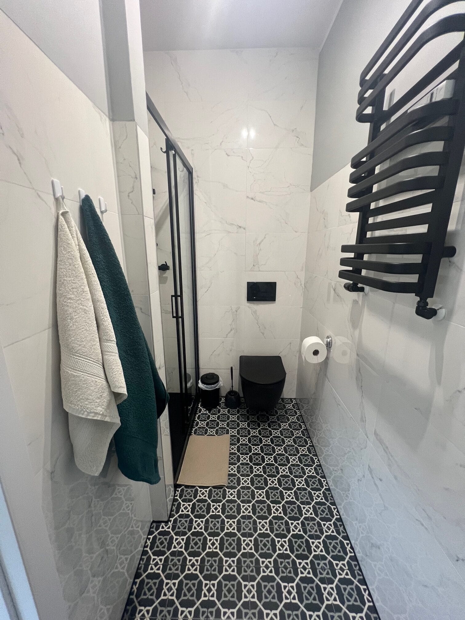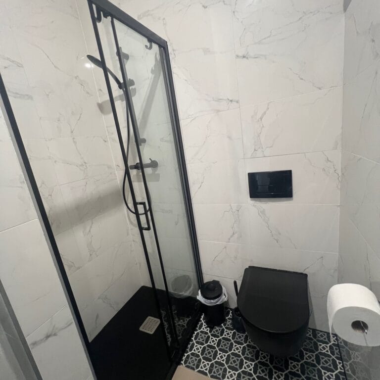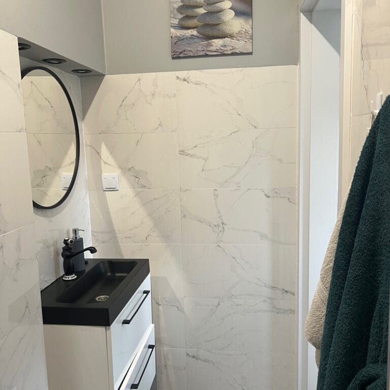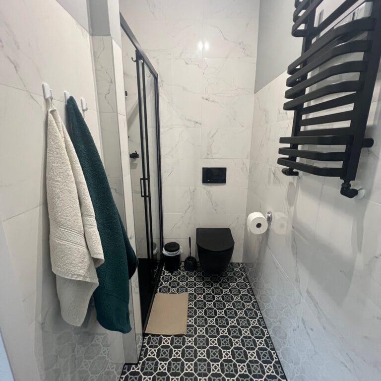 Toaleta, kabina prysznicowa, suszarka do włosów, ręczniki, papier toaletowy – gotowy zestaw startowy!