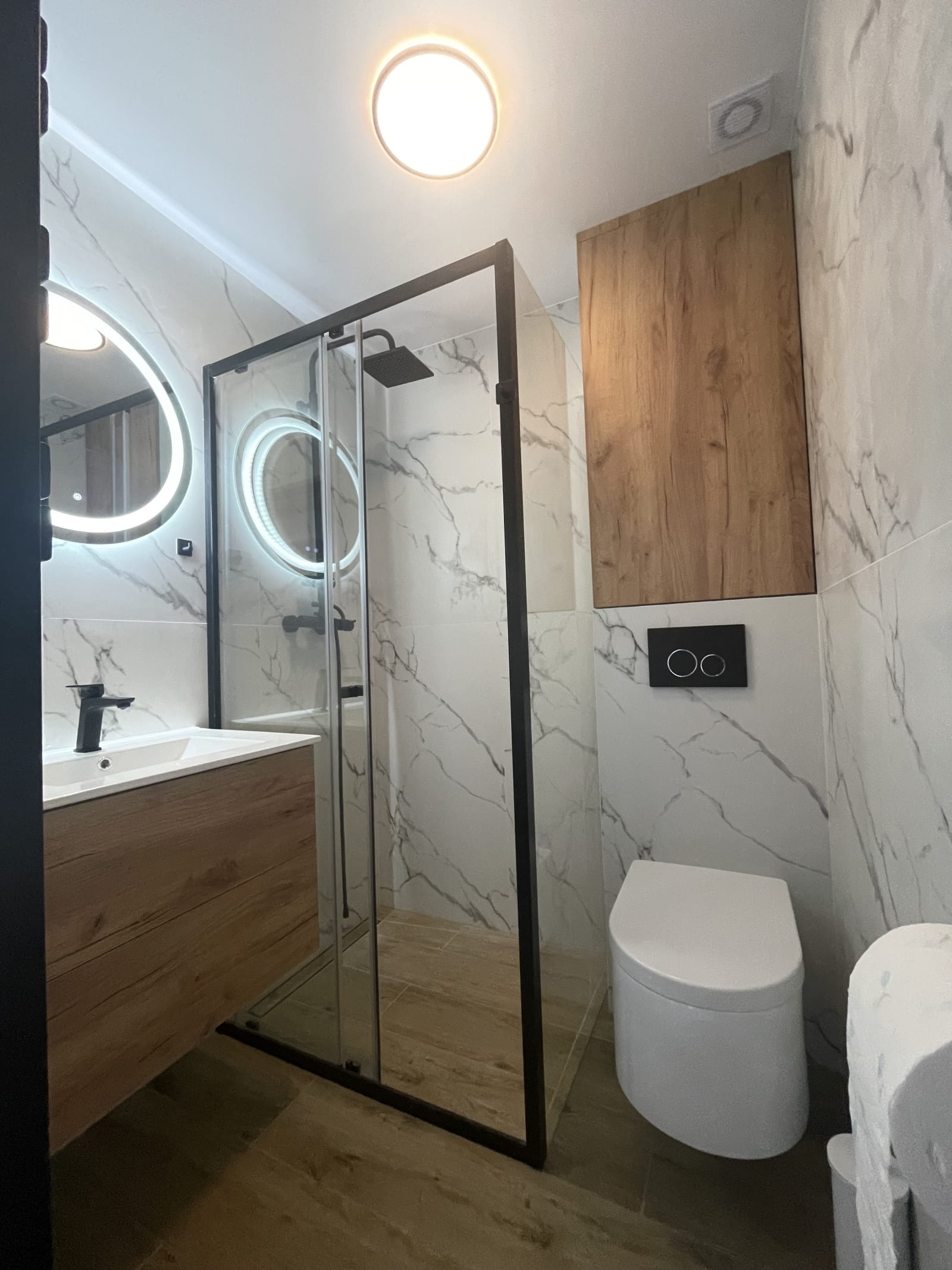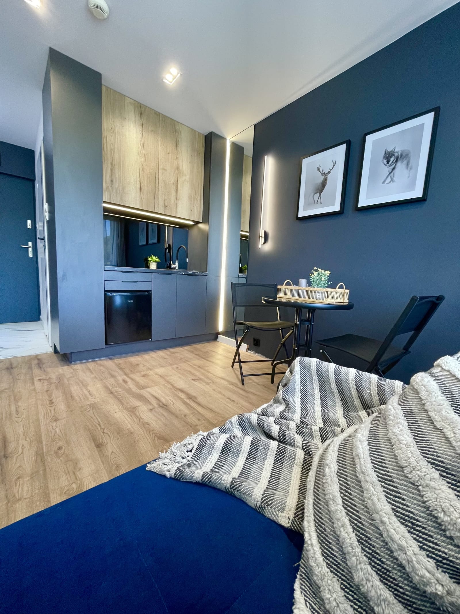 Apartament składa się z przestronnego salonu z aneksem kuchennym oraz eleganckiej łazienki.
